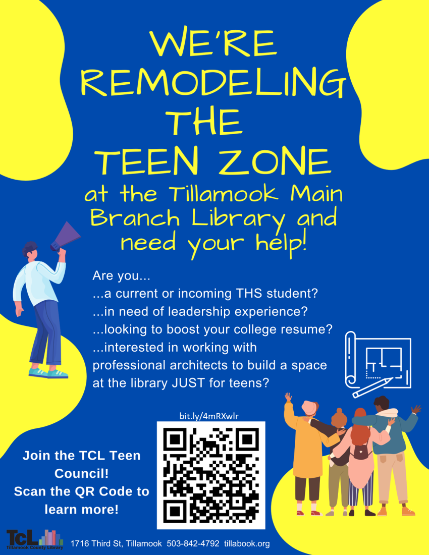 The Tillamook County Library is entering the second phase in the redesign of its teen area at the Tillamook Main Library, and local teens are invited to help shape the process and select the design for the final layout.