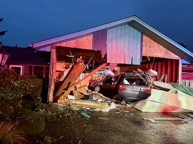 (SEASIDE, Ore. – December 14, 2025) – At approximately 6:03 a.m. on December 14, 2025, the Seaside Police Department, along with Seaside Fire & Rescue, responded to a reported motor vehicle crash into the garage of a house in the 1600 block of South Franklin Street.