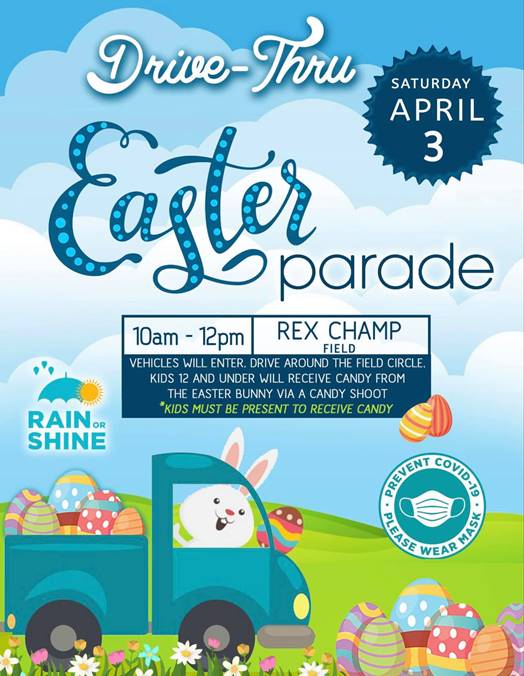 The annual North County Easter Egg Hunt at Rex Champ field will be a “drive-through” event featuring a candy shoot from the Easter Bunny, Saturday April 3rd from 10 am to Noon.