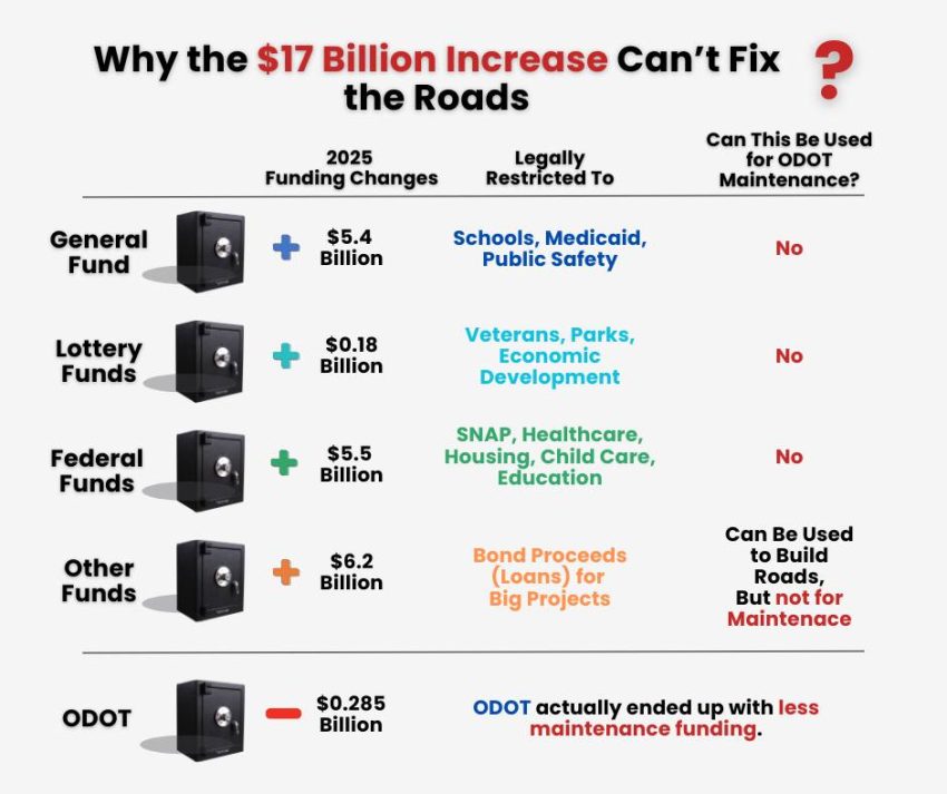 Despite a $17 billion increase in Oregon’s 2025 state budget, ODOT’s share actually decreased by roughly $250 million.
