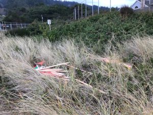 There were also some poles and stakes stacked in the dunes below Lot 3200 overnight yesterday. The survey team removed them today. Edge has reminded its subcontractor not to leave any materials or survey equipment on Tax Lot 3200 (or anywhere on the public beach) and all survey materials and equipment will be removed after work is complete each day. We apologize that the survey crew didn’t adhere to our guidelines.