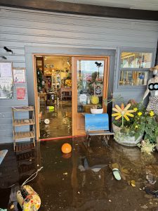 EDITOR’S NOTE: Heart of Cartm can use our support now, more than ever … HoC’s reuse resale store was flooded this week during the “atmospheric river” event. Please go to their website and give what you can to support this community treasure that provides so much joy. Here’s what the store entrance looked like this week …