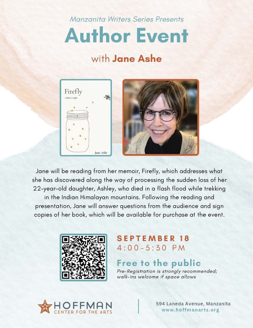 From Julianne Johnson – Please join me in offering a warm welcome to my cousin JANE ASHE of Seattle. She is coming to Manzanita SEPTEMBER 18, 4-6, at THE HOFFMAN CENTER to read from her book FIREFLY.