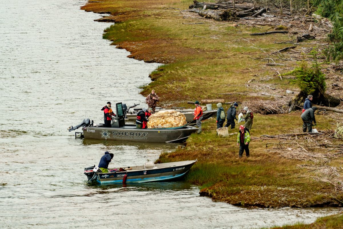 Winter weather and King Tides deposit marine debris around our estuary—a nursery for juvenile salmon, migrating birds and local wildlife such as cougar, beaver, and elk. Since 1999, volunteers have come together in a community-wide effort to gather marine debris from around the bay’s edge—to the benefit of all who call the estuary home.