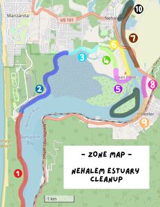 Beginning at 9a.m. on March 8th, volunteer teams will report to one of ten zones around Nehalem Bay to take on a section of the estuary. Whether you’re a regular rugged explorer or have little ones in tow, there is likely a zone with suitable terrain for you! Trash is sorted and disposed of with the help of local re-use and recycling nonprofit Heart of Cartm in Wheeler—where we will return for a midday celebration of our accomplishments.