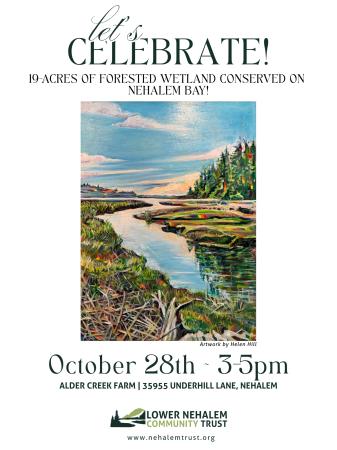 • LOWER NEHALEM COMMUNITY TRUST CELEBRATES CONSERVATION OF CRITICAL TIDAL WETLAND ON NEHALEM BAY WITH COMMUNITY ON OCT. 28TH