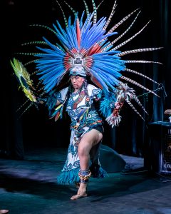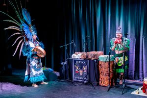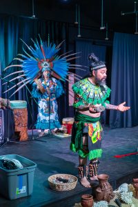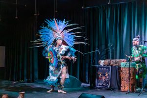 The couple performed traditional music and dance, while explaining the significance and meaning behind those dances. One of the dances honored hummingbirds, which are important in Anahuac cultures, referred to as huitzillin in Nahuatl. They are a powerful symbol of the sun’s rebirth from its lowest point, as it becomes a hummingbird. They are also considered a way to remember people no longer with us.