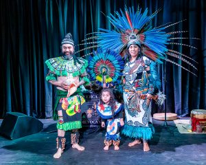 On Saturday evening February 7, 2026, Bay City Arts Center hosted a special treat, an Ancestral Music and Dance Celebration featuring Huehca Omeyocan, an Indigenous ensemble dedicated to sharing the ancestral traditions of the Anahuac (Mesoamerican) people. “Anahuac” is the name the Náhuatl speaking cultures gave to the North American continent which means “The Land surrounded by the Great Waters” because of the Pacific and Atlantic oceans surrounding the land. The interactive cultural event featured authentic traditional music and drumming and a dance performance celebrating community.