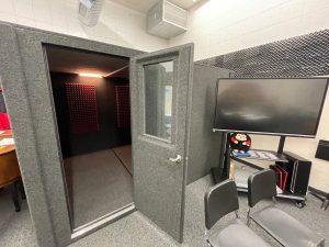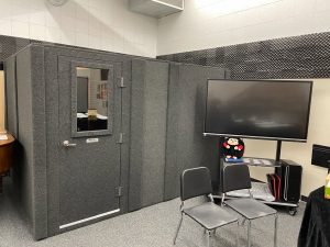 Music Director, Michael Simpson is excited to share the latest addition to the Neah-Kah-Nie Music Department, the Whisper Room. NCAM assisted by raising money and writing grants. Michael has been persistent in seeking resources to build a Music Technology Program at Neah-Kah-Nie. With a donation of $60,000 in music equipment, the Whisper Room and a very minimal lease for sound and recording equipment, that persistence is paying off to benefit the students seeking a career in the music industry.