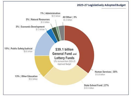 The total 2025-27 legislatively adopted General Fund and Lottery Funds budget by program area is reflected in the chart below: |