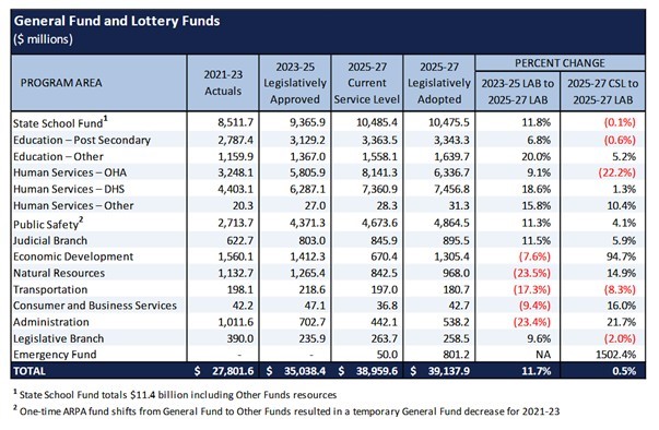 | General Fund and Lottery Funds expenditures of $39 billion this biennium included $271.9 million in targeted reductions.
