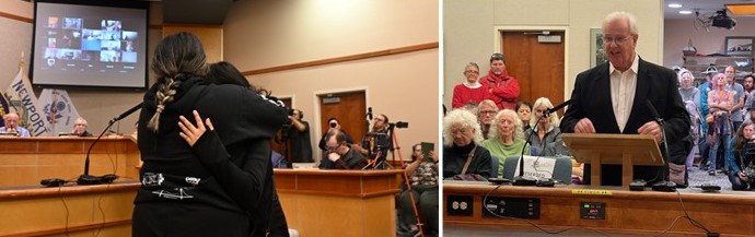 | On Wednesday night, people filled the Newport Council Chambers and spilled out into the hallway where monitors had been placed. Three rooms at the nearby recreation center were also crowded. And for more than two hours, people came to the microphone to passionately share their concerns and outrage that the quiet removal of the helicopter puts lives at risk, and that an ICE detention center is not welcome here. We heard from fishermen worried about safety, businesspeople troubled about the effect on our hospitality industry, and most poignantly, from fearful immigrants and a young woman whose father had been arrested.
