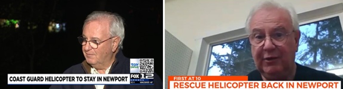| I told OPB, “We’re very pleased with these assurances that have been made to our U.S. Senators. Keeping the helicopter in Newport is critically important year-round.” Last week, I reported to you that, between 2014 and 2025, the U.S. Coast Guard rescue helicopter based in Newport was responsible for the rescue of approximately 500 people, including 30 commercial fishermen whose lives were saved at sea, according to court records.