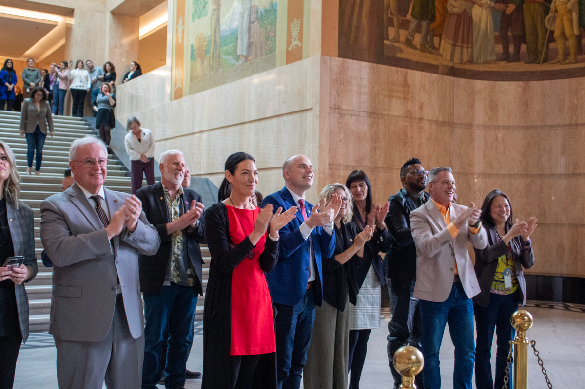 For the first time in years, Oregon lawmakers in Salem’s newly-reopened Capitol streamed out of the chamber floors into the rotunda to cap the end of a short legislative session that had both Republicans and Democrats claiming victories.
