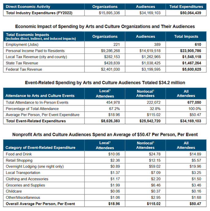 Overall attendance at these events last year was around 700,000 people, a third of whom were from outside the county. Average spending was $50 per person, which means those events generated $34 million in spending. Factor in food, shopping, lodging, and childcare, and the total economic impact jumps to $50 million.