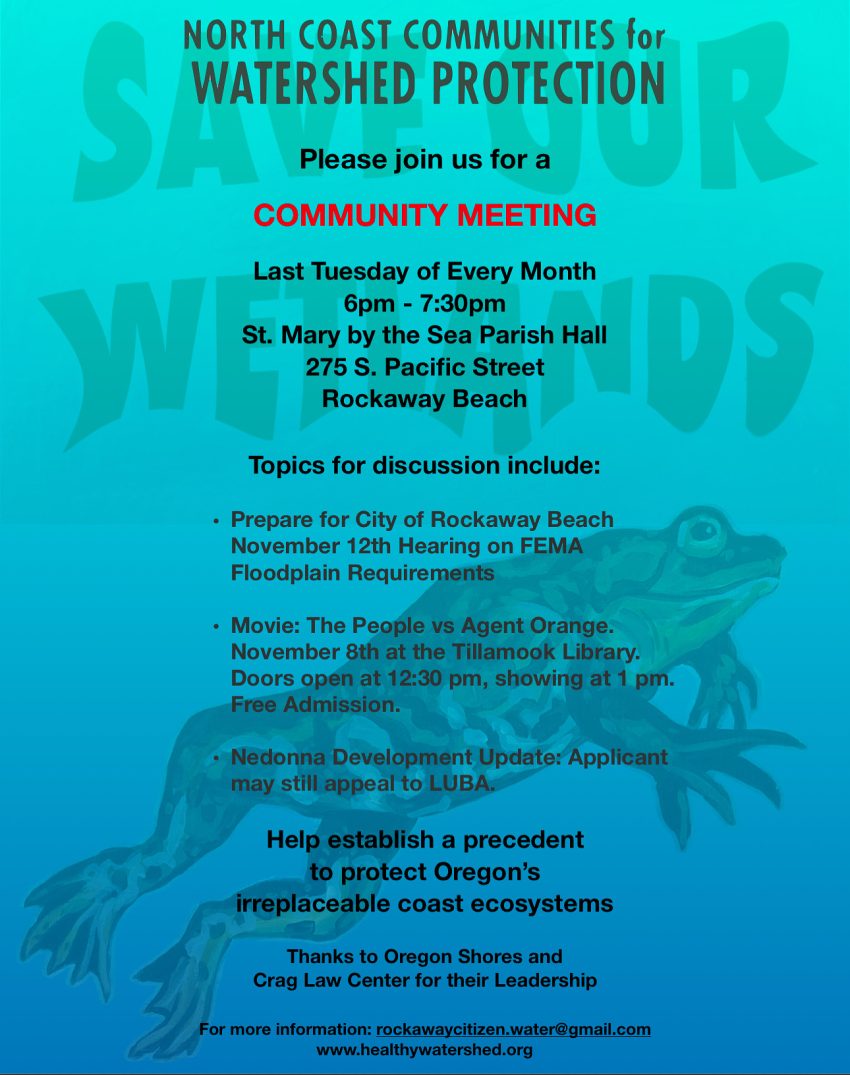 1. Prepare for City of Rockaway Beach November 12th Hearing on FEMA Floodplain Requirements