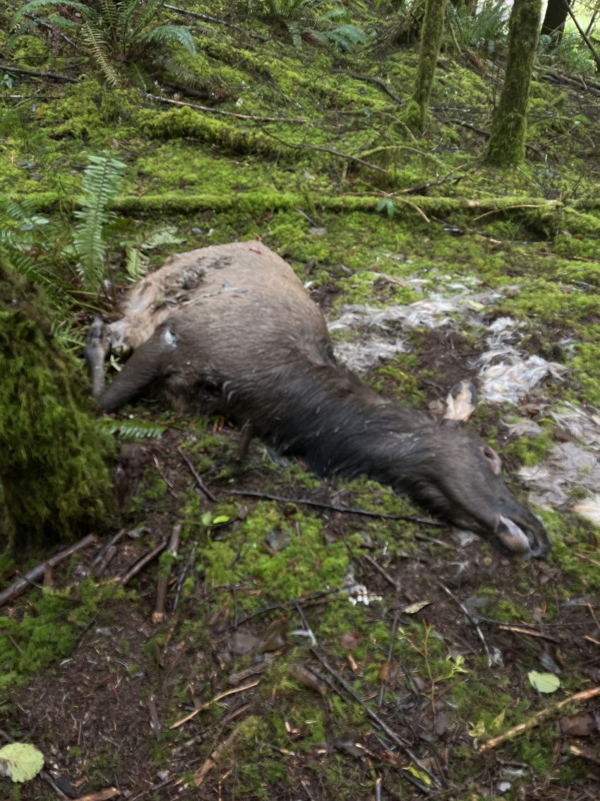 On November 28, 2025, Fish and Wildlife troopers responded to a report of a dead cow elk in the Alsea Unit within the Siuslaw National Forest. The cow elk was found in a remote area near the end of U.S. Forest Service (USFS) Road 3462, off the main USFS 58 Boundary Road. The entire cow elk had been shot and left to waste. Additionally, the intestinal remains of a bull elk were discovered nearby, indicating that someone had likely shot and taken a bull elk from the same area around the same time.