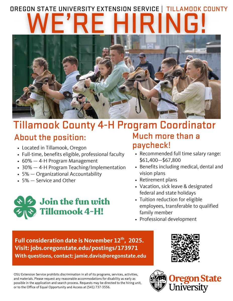 The Oregon State University Extension Service is seeking a dedicated and enthusiastic individual to serve as the 4-H Youth Development Coordinator in Tillamook County.