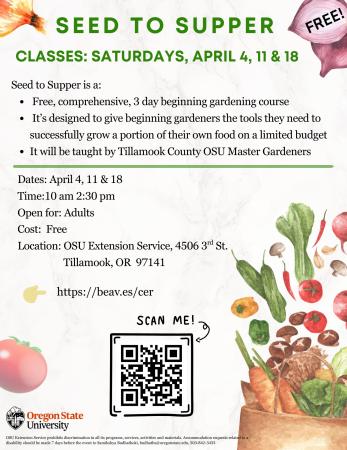 Led by Tillamook County OSU Master Gardeners, you’ll learn everything you need to go from seed to table.