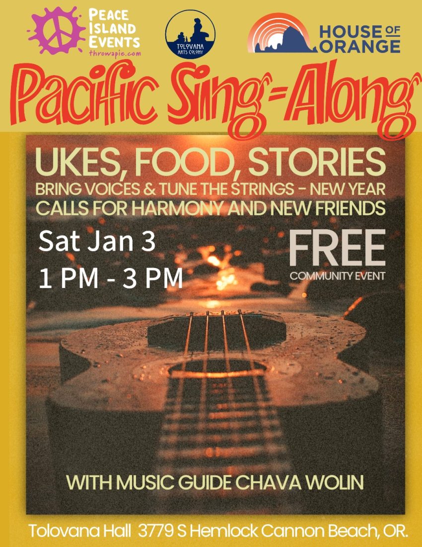 And for anybody who can make it, please bring voices and ukuleles to Cannon Beach on Saturday January 3rd. We’ll gather at Tolovana Hall from 1 to 3 pm, celebrate the Pacific with songs, food and stories. Even if Kat can’t be there in person, I’ll feel her presence in my heart, along with Chuck and so many other souls who work for peace.