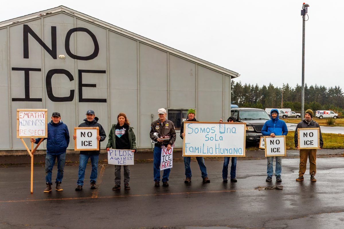 He reassured the crowd that he is doing all in his power to get the Coast Guard helicopter returned to Newport and to “make sure that this community is safe from the abuses of ICE.” This drew loud stomps and cheers. Wyden joins Rep. David Gomberg, the Newport City Mayor and other local and state elected officials, in bipartisan opposition to a proposed ICE facility, and support of the Coast Guard.