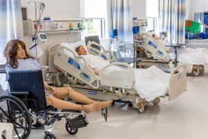 The new building includes state-of-the-art simulation labs, high-tech classrooms, office space, and a large-scale community space for conferences, trainings, and locally hosted events.