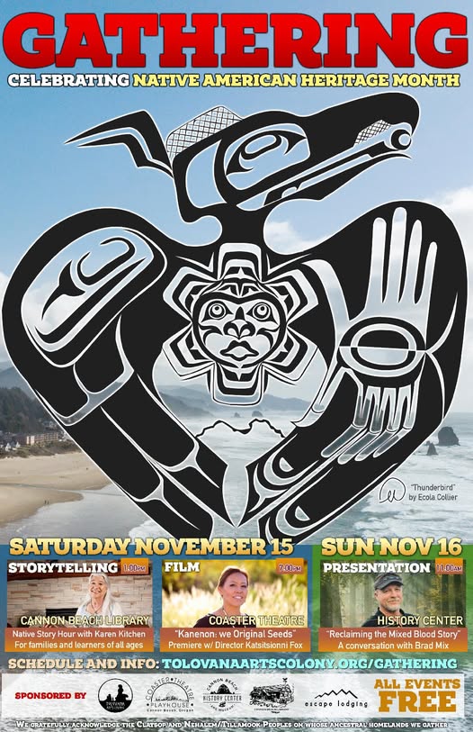 The Gathering, a celebration of Native American Heritage Month, returns to Cannon Beach for a weekend of art, film, conversation and more. In its third year, the event features a mix of indigenous voices, including filmmaker Katsitsionni Fox (Akwesasne Mohawk Nation), storyteller Karen Kitchen (Osage Nation), scholar Brad Mix (Red River Métis), poet Cliff Taylor (Ponca) and more.