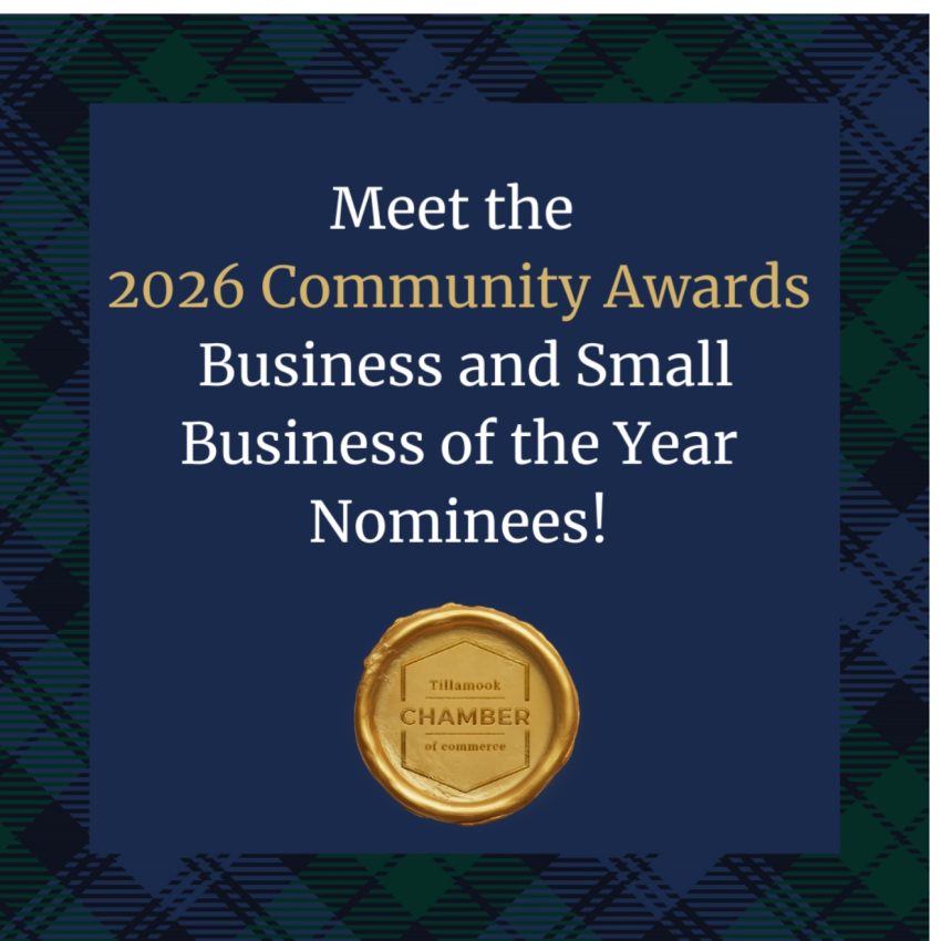 The 2026 Community Awards span five categories; Business of the Year, Small Business of the Year, Development Project of the Year, Program of the Year, and Citizen of the Year, each representing the tireless work and community spirit that keep Tillamook thriving.
