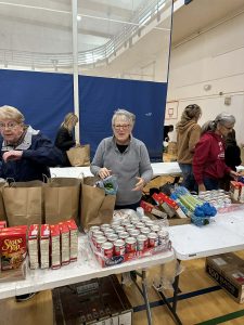 In short order the Rotary Club and the Y collected donations to buy the supplies, and 265 applications for food boxes. Two weeks later, Grocery Outlet delivered a truckload of food to the YMCA gym, where 50 volunteers filled boxes for families. Recipients drove up, and their groceries were delivered to their vehicle by friendly volunteers.