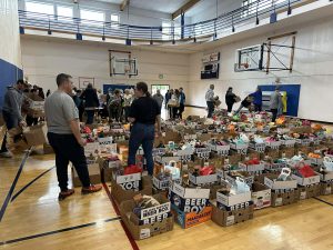 How this community works – identify a need, line up the right partners, call for donations and volunteers. The Tillamook Rotary Club did just that in early November. The Pioneer did a story (https://www.tillamookcountypioneer.net/tillamook-county-rotary-grocery-outlet-tillamook-ymca-partner-to-provide-food-boxes-donations-needed/) calling for donations for $50 to help support providing the food boxes, and the time they were hoping to provide 100 boxes. Fast forward to Monday November 24th – distribution day at the YMCA – and the group raised funds and distribute over 260 – 265 to be exact food boxes. It was a logistics, coordination, volunteer and community driven effort that was AMAZING! Here’s what Tillamook County Commissioner Mary Faith Bell shared on social media.