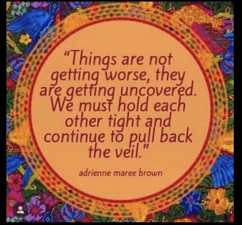 We owe it to Life to fight for our lives and for each other’s lives, including the more than human and the Earth herself. We owe it to Life to be honest about, and to truly reckon with, what is and what has been. ALL of it. We have no other option. For us (humanity) to ever, ever hope to someday be in a place that is better than here (gestures widely at everything), to ever, ever get to a place that is healed, to get to a place where we center care for each other and for the Earth, to get to a place that isn’t actively trying to harm us all, we have to be honest about where we are and how we got here. Everything is so multilevel fucked and we have so far to go, and we have to start somewhere. We have to start with being in the truth of where we are, right? Only then, can we hope to move forward from a place of integrity.