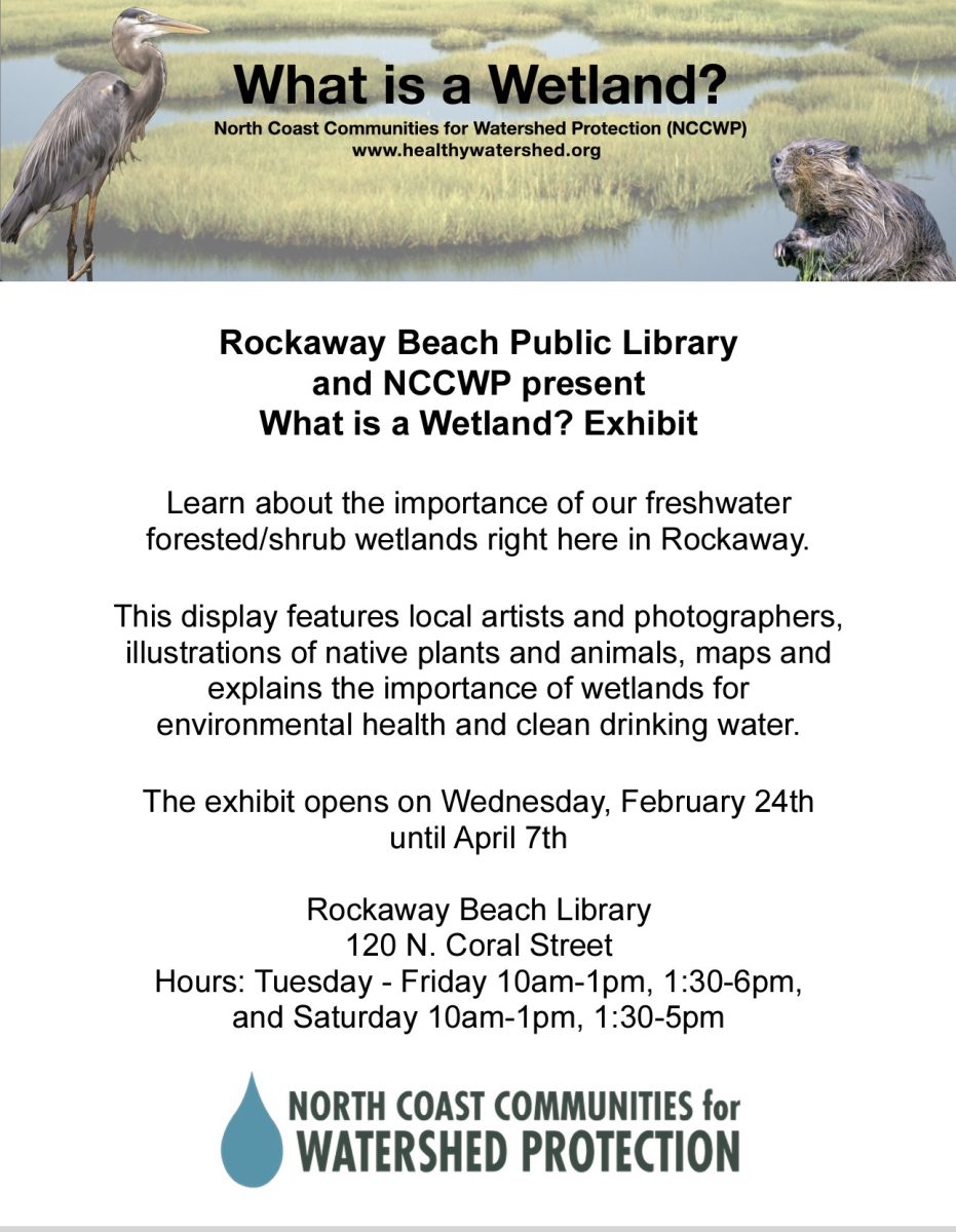 North Coast Communities for Watershed Protection and the Rockaway Beach Public Library present a special exhibit, “What is a Wetland?”